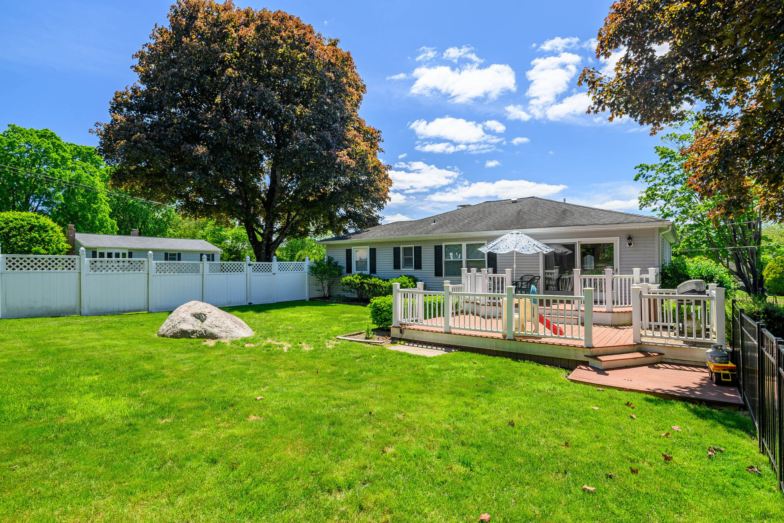From the moment you arrive, you’ll notice the lush mature trees that not only provide cooling shade but also create a serene, storybook-like ambiance. The newly installed fence makes the backyard a safe haven for kids or furry friends, while still leaving plenty of space for gardening, relaxing, or hosting summer get-togethers.